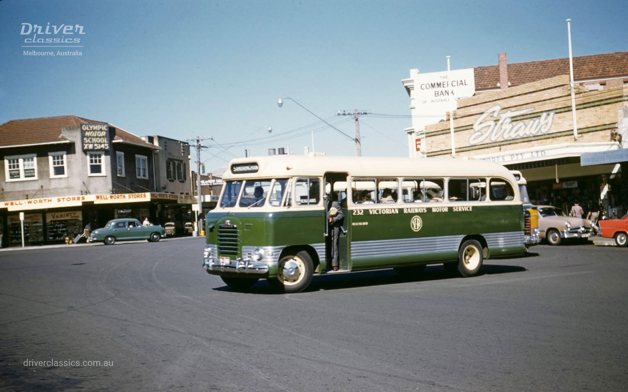 General Motors UK Vauxhall-Bedford division introduced the forward control ‘S’ series truck and bus chassis’ in 1951, with bus chassis arrivals in Australia beginning in 1952. Vauxhall-Bedford and GMH’s (General Motors-Holden Australia) marketing referred to them as the Big Bedfords. A larger 300ci petrol engine was featured with a smoother and quieter drive line. The ‘S’ series bus chassis was designated ‘SB’, with an SBG (Gasoline) later called SB3 utilising a petrol engine, while SBO (Oil) later called SB5, offered a diesel engine.