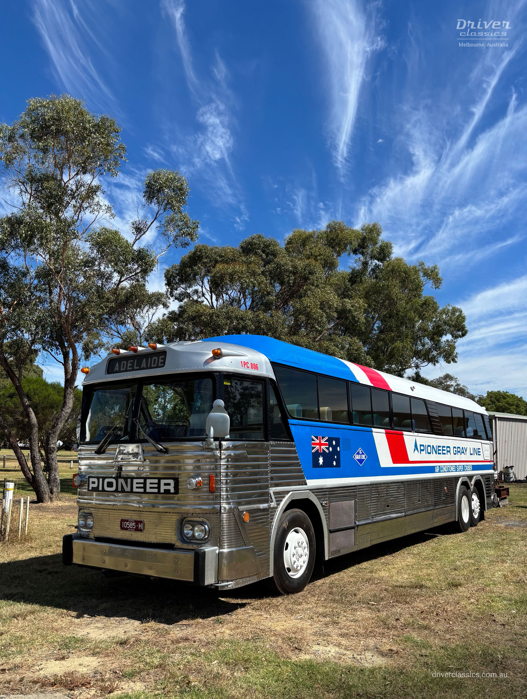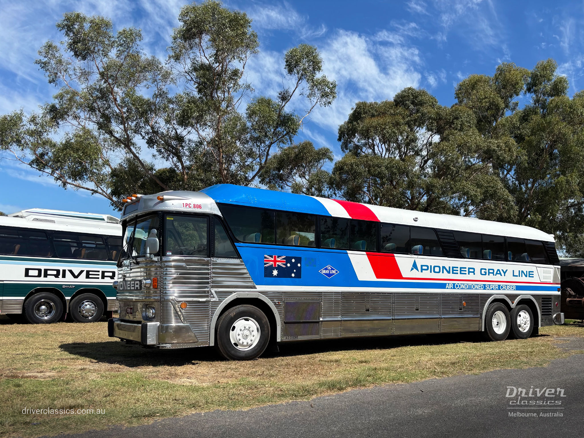 Ansett Pioneer sold fleet #1PC806* MC-7 to Macquarie Towns Bus Service in 1985 and sometime later it passed to Eastside Coaches, Sydney NSW. Driver Classics acquired MC7 #1PC806 from Eastside Coaches in 1994 for restoration. A second 1972 MCI MC7 (Build #9516, Pioneer fleet #802) ex Glenhenry Tours was purchased from Rob Duke, Gembrook VIC in October 2017 for parts.